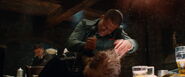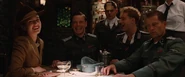 When Wilhelm sits at The Basterds' table and causes Hicox to lose his temper, Stiglitz points at Wilhelm's friend and the female soldier that they'll both will be responsible for Wilhelm's behavior and makes him come and take the sergeant away, only to be interrupted by Major Dieter Hellstrom, who, after questioning Hicox, tells him and his companions to take Wilhelm away, which they do.